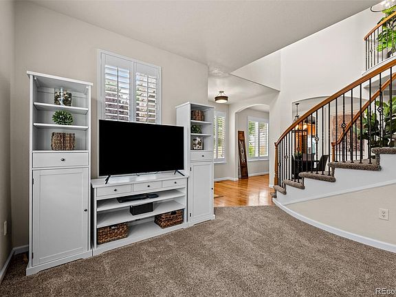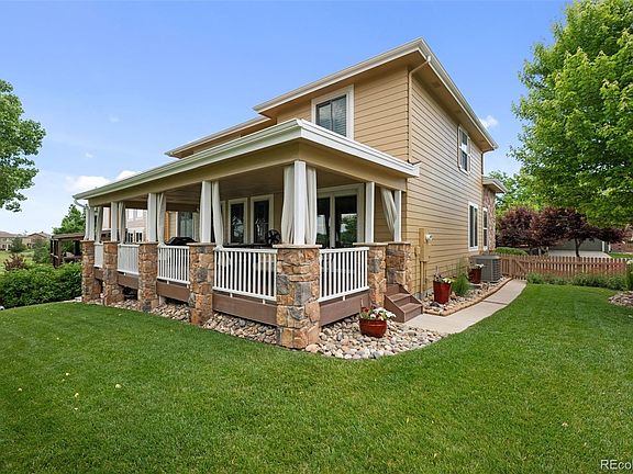 Picture perfect 5 bedrooms, 4 baths, + study home with a finished basement backing up to open space and downtown views. Located in the highly desirable Firelight Subdivision of Highlands Ranch. This lovely home was designed for both comfort and convenience. You will be welcomed with natural lighting and beautiful hardwood floors. The front room offers versatile space, easily adapting to your needs “an additional study or cozy seating area”. The dining area has built-in cabinets that combine functionality, style and space utilization. This home provides the perfect backdrop for entertaining, with a kitchen that ensures easy access to both the inviting family room and the expansive covered patio designed for ultimate outdoor enjoyment. Additionally, the main floor offers enhanced convenience with a ¾ bath, a flex room perfect for a home office or study, and a well-appointed laundry room complete with built-in cabinets. Upstairs, the primary suite serves as a private retreat, with a beautiful, remodeled bath and dual closets. Three additional bedrooms and one full bath complete the upper level. Finished basement features an inviting atmosphere with a comfortable bedroom, (perfect for guests or a growing family), half bath and a bonus room that provides ample space for relaxation/working out. Beautiful backyard, incredible expansive covered deck with trex decking backing to open space and downtown views. Walk to trails, parks, schools, shopping, restaurants, Southridge Rec Center. Easy access to C470, I25, light rail, DTC, Denver, Chatfield Reservoir. Highlands Ranch includes activities, events, classes & much more. Additional features: newer HVAC, newer washer and dryer, newer refrigerator, shutters and ceiling fans throughout, storm front door, a pass-through door in garage making it easy and convenient to access the side yard. This move-in ready house is a perfect place to call home!