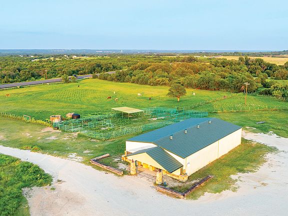 The Aces Ranch is a stunning +/-190-acre turnkey Texas ranch with sweeping views, diverse terrain, and extensive improvements—perfect for recreation, livestock, equestrian use, or investment. Currently operating as a residence, AirBnB, and animal chiropractic clinic, this unique property offers incredible versatility and upside. The landscape features ~180 feet of elevation change, showcasing panoramic views of the Bosque River Valley and surrounding ridgelines. The land is a mix of fertile bottomland and dramatic hills with native live oaks, multiple ideal building sites, and excellent privacy. Water is plentiful, with a reliable well, 7,500 gallons of storage, a reverse osmosis filtration system, a pond, two stock tanks, and a seasonal creek. Improvements include a breathtaking ~15,000 sq ft main home with 6 bedrooms, 7 baths, grand living areas, patios, and a hilltop fire pit. Originally built in 2001 and updated in 2010 and 2016, the home was designed to capture the scenery from every angle. A nearby 2-bed, 1-bath guest home with kitchen and living room is ideal for guests or rental income. Supporting structures include a metal shop with water/electric, small barn/dog run, and a covered riding arena. The property is fully perimeter fenced with 10 holding pens, working pens, and cross-fenced pastures. Wildlife thrives thanks to years of organic pasture management and a long-standing no-hunting policy, with deer, turkey, dove, and more. A wildlife tax exemption is in place. Just 3.5 miles from Meridian with Highway 6 frontage, the location offers both seclusion and convenience—under 2.5 hours from Austin or Dallas. Sold nearly turnkey with antique furnishings, artwork, and ranch equipment included. A rare opportunity to own a fully equipped, scenic, and highly functional ranch in the heart of Texas.