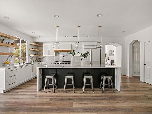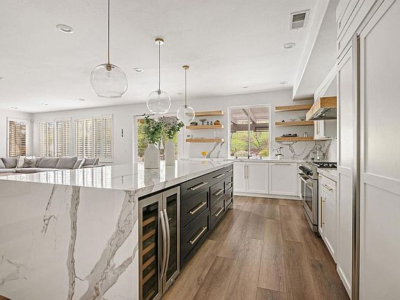 Discover the epitome of luxury living in the highly desirable and exclusive South of Pomerado community with this exquisite residence at 10772 Edenoaks. This architectural gem, meticulously maintained and upgraded, stands as a testament to elegant design and sophisticated living in one of San Diego's most sought-after neighborhoods. As you enter this magnificent 3,697 square foot home, you are greeted by the artistry and grandeur of show-stopping, dramatic dual islands in the kitchen. These masterpieces, crafted from Calacatta LAZA stoneware slabs imported directly from Italy by Favorita, feature striking white waterfall edges that serve not only as a focal point for the home but as a testament to luxury and craftsmanship. The kitchen doesn't stop there; it is equipped with a state-of-the-art 48-inch Double Oven Range, complete with a Griddle and 6 Burners, perfect for the culinary enthusiast who values both function and form. Custom cabinetry throughout the kitchen underscores the unique blend of modern luxury and timeless design, offering ample storage while enhancing the aesthetic appeal of this culinary space. This commitment to quality and bespoke design is evident in every detail, from the soft-close drawers and open shelving to the under-cabinet lighting and a dedicated drink refrigerator, ensuring that every aspect of the kitchen is both beautiful and functional. The sophistication of the main living areas is matched by the luxuriousness of the private spaces. The expansive master suite is a haven of tranquility, featuring dual walk-in closets with custom-built ins, a spa-like ensuite with dual vanities, a jetted tub, and a stall shower, promising a serene retreat from the everyday. Beyond the interior's four bedrooms and dedicated office space, the home extends its living spaces outdoors. A meticulously designed backyard offers a sparkling pool and spa, set against the backdrop of an elegant pergola, creating an outdoor oasis perfect for relaxation or entertainment. This home is not just a place to live; it's a lifestyle offering, situated in a coveted cul-de-sac within the Arbors, promising unmatched elegance and comfort in a prestigious community. With additional features like owned solar panels, dual-zone heating and AC, epoxy-coated garage floors with ample storage, and plantation shutters throughout, 10772 Edenoaks represents the pinnacle of San Diego living. Welcome to your new home in the exclusive South of Pomerado community of Arbors at Scripps Ranch, where luxury, style, and comfort meet in perfect harmony.