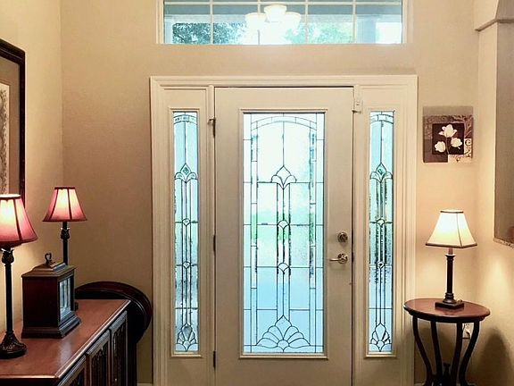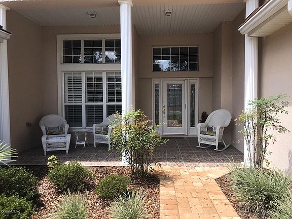 Popular Monaco model in highly sought neighborhood of Eagles Point in Oak Run. Featuring 3 bedrooms, 2 full bathrooms, a den, and a 2.5 car garage with a separate entrance for a golf cart or extra storage. This open floor plan is complimented by high ceilings, a spacious kitchen with lots of cabinet and counter space and an island, large master suite with trey ceilings and his and hers walk in closets, a wall safe for protecting your valuables, and separate dual vanities in the master bath with a soaking garden tub and a step in shower with a seat. Enjoy the enclosed heated and AC wrap around lanai all year long with the extended patio for outdoor seating or barbecuing.