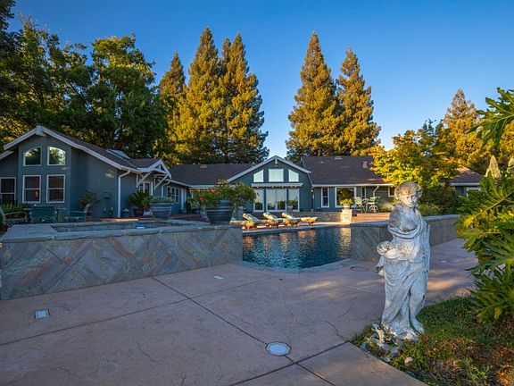 Entertainer's Dream! Gorgeous gated estate that feels like an oasis in the rural highly desirable Sheldon Woods Neighborhood on nearly 5 full acres. This immaculate property is overflowing with serene views from the private pond, beautiful gardens and mature trees. Bright and fresh glowing from natural light with oversized windows with warm colors and an open floor plan. Stunning family room with elegant vaulted ceilings and rustic beams flows seamlessly into the chef's dream kitchen boasting of granite countertops, stainless steel appliances, double fridge, gas range and unique brick details. Charming one of a kind floor to ceiling library. Lovely master suite with an abundance of natural light, vaulted ceilings and en suite boasting of double vanities, soaking tub, and large walk in closet. Coveted second master also has a beautiful en suite and walk in closet. Storage galore with multiple garages! Large barn and almost an acre of fenced riding area. A Definite must see!