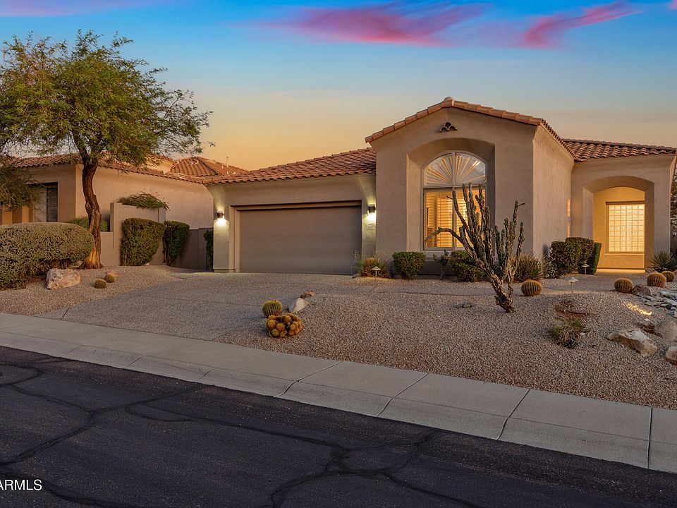 Check out this wonderful McDowell Mountain Ranch home with mountain & city views. 3 bedroom 2 bath Luxury Home with high ceilings and lots of windows. Bright & Open floor-plan including new paint, carpet and built-in entertainment center.It's an Ideal setting for relaxing or entertaining. Gourmet kitchen with quartz counters, Gas appliances including a new double oven and refrigerator.. Outstanding backyard perfect for entertaining with new built in Gas BBQ, kiva fireplace alongside a gas fire pit with ample seating area.. Lush private backyard featuring low maintenance plants and synthetic grass. Home is located in the guard gated community of Cimarron Hills & includes access to exclusive tennis courts, work out facility & heated pool & spa. Close to world class golf, shopping, spas, Westworld, hiking/biking trails and all that Scottsdale has to offer.