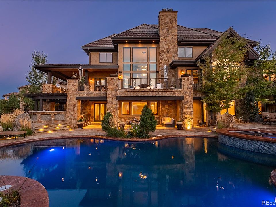 Situated at the end of a quiet Cul-De-Sac with BREATHTAKING MOUNTAIN VIEWS, this CUSTOM home is sure to impress. An absolute entertainers delight with an outdoor oasis like none other. Soak up the views from any of the 3 fire-pits/lounging areas or outdoor fireplace, enjoy outdoor dining from one of the 2 outdoor kitchen/ bar areas, and soak in your own private pool, surrounded by lavish landscaping for privacy. Backing to open space area with views of reflection pond. As you enter the home the 2 story great room with stone fireplace, wet bar area and wine closet and massive windows to capture the mountain views welcome you in. The great room is open to the gourmet kitchen with huge island with double stacked granite, top of the line appliances and large nook area which walks out to the massive deck overlooking the pool area. The main floor primary suite has a custom stone fireplace, retreat area and walks out to the balcony. The primary bath has a huge walk-in closet, soaking tub and steam shower. The upper level suites are complete with en-suite baths and walk-in closets plus a loft area which is perfect for a homework or reading area. The walk-out basement finish is well under way- framed, plumbed, drywalled with electrical complete and is ready for your flooring and finish selections. DON'T MISS THIS INCREDIBLE OPPORTUNITY to live in this sought after gated community in one of the BEST custom homes on the best LOT.
