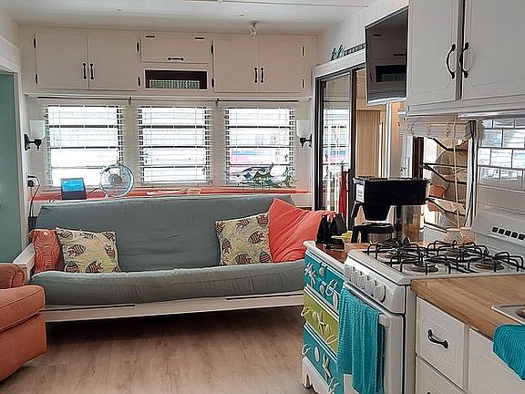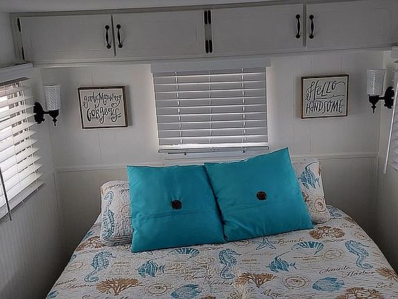 One bed one bath permanent tie down trailer with full Screened in Lania . In desirable Sarasota RV park. Availability is for 5 month or 6 month seasonal. Pool, spa, gym, pool room, pickle ball court, walk to Bay. Community events all year.