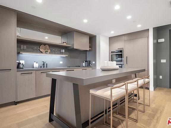 Unit 504 is a remarkable 2-bedroom residence at The Liddel, Westwood's newest collection of sophisticated living on the Wilshire Corridor, offering the comfort of 24-hour concierge service and the convenience of valet. Featuring expansive windows that extend from the great room, this unit provides expansive views of the Wilshire Corridor. The open-plan great room boasts ample dining and entertaining space, including a Jamie Bush-designed chef's kitchen featuring custom millwork with integrated Miele appliances and a signature kitchen island. Two-bedroom suites are located on either side of the great room for added privacy, each featuring a walk-in closet and an ensuite bath. Additional Jamie Bush-curated design features include wide-plank, white oak floors, terrazzo bathroom flooring, custom vanities, and Atelier de Troupe light fixtures. Residents enjoy a 24-hour concierge, private, enclosed motor court with valet, EV charging stations, wine room, catering kitchen, a club lounge, dining room, fitness studio and rooftop terrace with sweeping views of the surrounding hillsides.