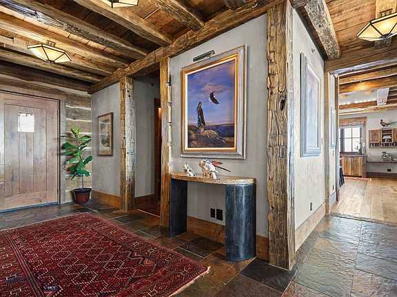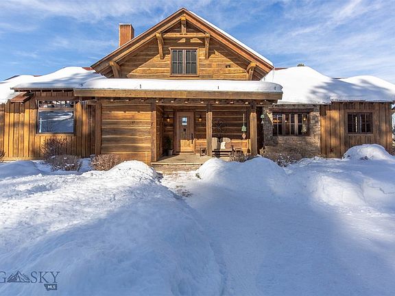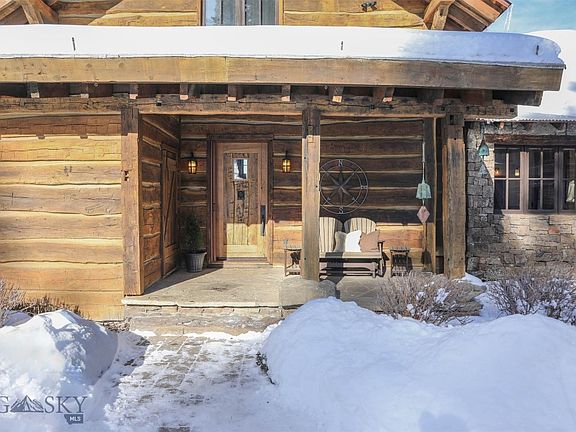 From the living roof at the impressive entry to the breathtaking views of Gallatin Valley, Woodhaven is a masterpiece of craftsmanship and design. This one-of-a-kind residence immediately captivates, beginning with the massive black walnut front door, and offers an unmatched blend of elegance, history, and rugged Montana beauty. Built as the personal residence of acclaimed luxury builder Chris Lohss, every detail of Woodhaven’s design reflects reverence for historic materials, impeccable craftsmanship, and timeless elegance. Nestled among the aspen groves and pine forest, the setting is a private oasis just north of the Gallatin Range, which provides access to endless recreational pursuits just minutes away. Timeless rustic design incorporates hand-picked reclaimed white oak timbers, custom black walnut doors with Sun Valley forged hardware, and African blaze slate floors. The impressive stone fireplace integrates petrified sequoias and grounds the great room. In the chef's kitchen, top of the line appliances, custom cabinets, and soapstone counters provide ample space for both grand entertaining and everyday meals. The main level primary suite features soft plaster walls, reclaimed beams and a spa like bathroom with steam shower and oversized tub, creating the perfect environment for rest and rejuvenation. The perfectly organized dressing room/closet has a place for everything and includes a washer and dryer. A loft is ideal for home office, art or yoga studio. Spread out in the lower level for movie or game night, with theater, game room, wine cellar and sauna. Two additional bedrooms, one with ensuite bath, and a safe room for firearms or valuables complete the main home. Guests will enjoy privacy in the detached guest apartment, equipped with full kitchen, two bedrooms, bath, mudroom, laundry hookups and wood burning stove. There are so many delightful details in this property, schedule your private tour to experience the best Montana living has to offer.