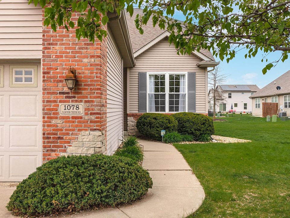 Beautifully maintained home in the highly sought-after Vineyards Subdivision. Upon entering, you'll be greeted by a spacious two-story family room featuring a cozy gas fireplace-perfect for gatherings. The MAIN FLOOR PRIMARY SUITE offers a luxurious retreat with a coffered ceiling, upgraded en-suite bathroom complete with a large shower, garden tub, double vanity, and an oversized walk-in closet. The eat-in kitchen features granite countertops, island, ample storage, stainless steel appliances, and an extra-tall double sliding door that floods the space with natural light. Nice patio off kitchen overlooking gorgeous evergreen trees. A convenient MAIN FLOOR LAUNDRY ROOM and half bath add to the home's functionality. Upstairs, discover a flexible loft space that can be tailored to fit your needs-whether as an office, play area, or additional living space. Two spacious bedrooms are connected by a Jack and Jill bathroom, offering privacy and comfort for all members of the household. The finished basement is a true highlight, offering an additional family room with a wet bar, a fourth bedroom, a full bathroom, flex room, and plenty of storage space. Many additional features throughout, some custom trim work, home audio speakers, electronic doorbell, fresh carpet and paint. Centrally located within the Unit 5 school district and just minutes from Grove Elementary, shopping, and other amenities! Close to State Farm & Rivian.