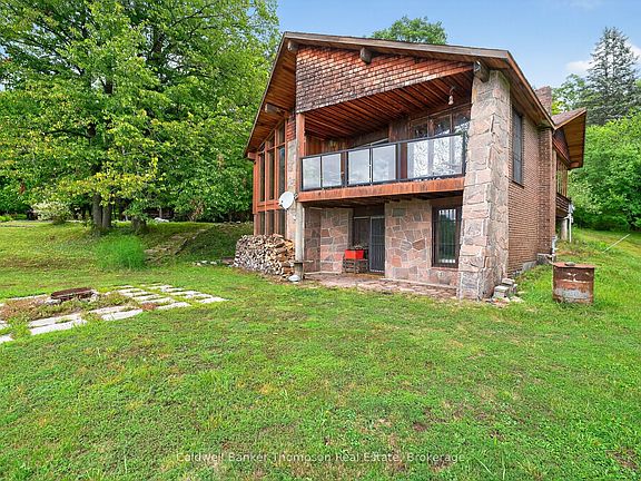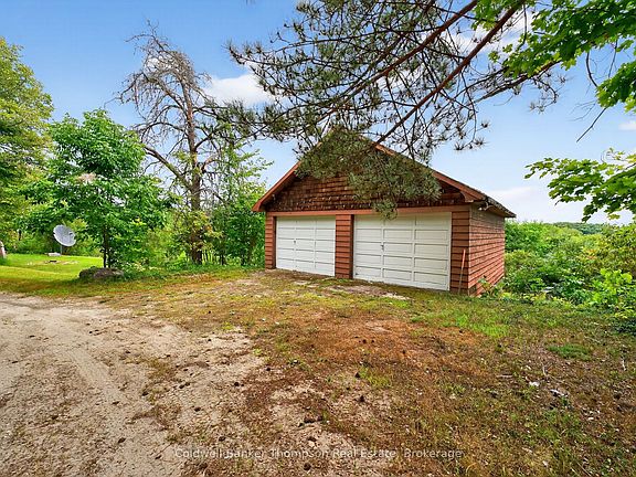 Welcome to 1078 So Ho Mish Road, a beautiful 20-acre property offering privacy, nature, and stunning views. This 3-bedroom home features a bright main floor with an open-concept living space, highlighted by a stone fireplace and expansive windows overlooking your private pond, valley, and glimpses of Doe Lake.The main level includes a spacious primary bedroom with a 5-piece ensuite. The walkout lower level offers two additional bedrooms, a 4-piece bathroom, a wood stove, and a second kitchen - perfect for entertaining or as an in-law suite. Step outside to enjoy the expansive deck and take in the serene views of the surrounding landscape. A detached 2-car garage with a lower-level workshop/garage space provides excellent storage and hobby options. Across the road, a town-owned lot offers direct access to Doe Lake, where you can swim, canoe, kayak, or paddle board just steps from your front door. With 20 acres of privacy, modern comforts like forced air heating, and natural beauty all around, this property is a rare find for those seeking the perfect blend of country living and lakeside enjoyment.