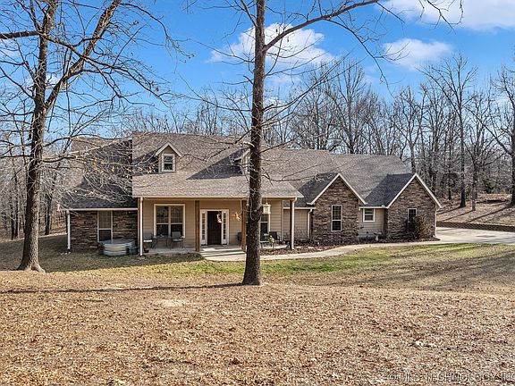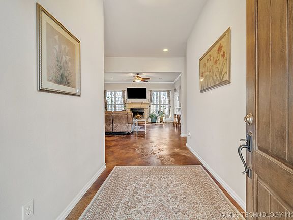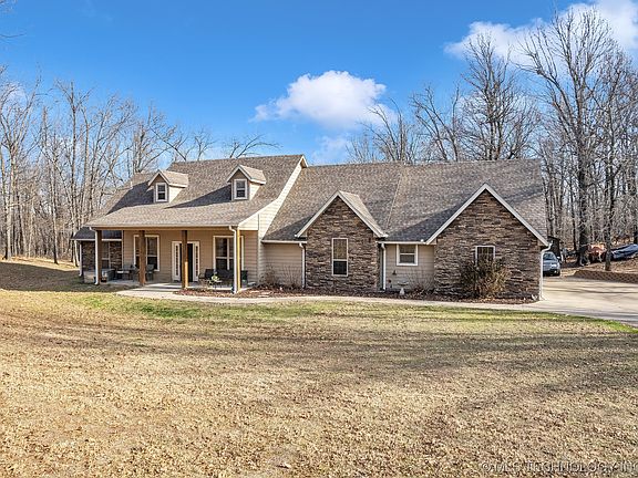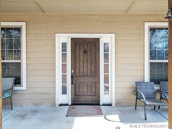 As you enter into this mini-French country estate, the fireplace encapsulates you surrounded by a huge window, bringing the outdoors in! Over sized great room with the ease of polished concrete floors. Open kitchen area with breakfast nook in addition to a separate dining area. Beautiful French country cabinetry with granite counter tops, lights over the island, and stainless-steel appliances. Built in storage in closets. Covered porch around back. What more could you ask for! The city of Sand Springs is 8 miles and Downtown Tulsa is only 16 miles away.