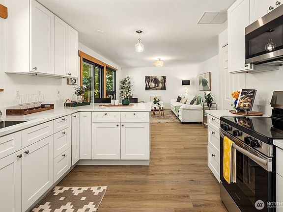 Price Drop. Rocking Rambler on Large Lot in Rolling Bay Neighborhood w possibility to Short plat. Roughly 1 Acre and zoned R-2. Great homebase with 3 Bed 2 Bath. Attached 2 car garage and fantastic rainbow driveway. Large yard allows for hobby farming and gardening. RV parking on Level pad. Mature tree snags, local birds, and wildlife. Walk to Bay Hay Feed and Manitou Beach. Brand new Kitchen and appliances, New Bathrooms, Floors, Paint on inside. Crawlspace and attic professionally cleaned and new insulation. Garage fully painted and New doors and openers. One Story living w room to grow. Dividable lot means lot of options. 2023 whole house heat and AC & All new doors and windows2023. 2012 Metal roof and 2012 Effective build date.