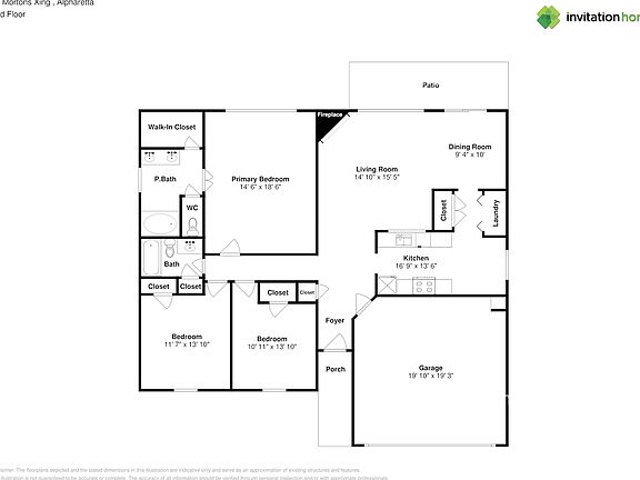 Home Features and Amenities: Air Conditioning, Fenced Yard, Fireplace, Garage, Long Lease Terms, Luxury Vinyl Plank, Patio, Pet Friendly, Primary Bedroom on Main, Single Story House, Smart Home, Stainless Steel Appliances, Tile, Walk in Closet, W/D Hookups, and professionally managed by Invitation Homes.