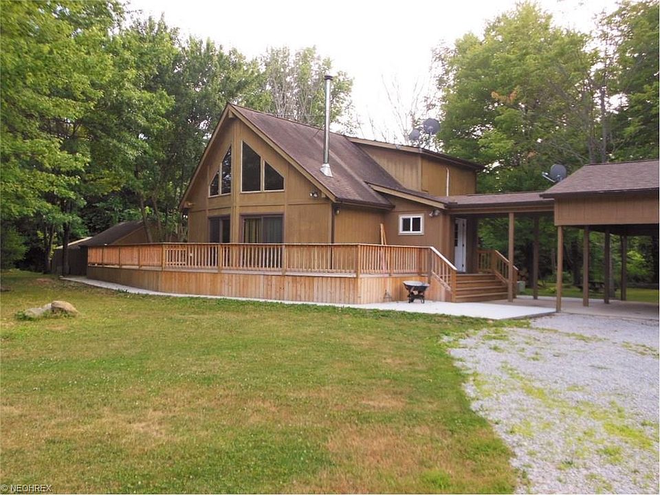 Situated back from the road, this contemporary home offers a fabulous A-frame style great room with a wall of windows to optimize your view and a wood burning stove. Surrounded by the newer wrap around deck, the first floor also offers a classic galley kitchen, two spacious bedrooms with full bath. The kitchen functionality is great for the cook on the go. Located on the second floor, the master suite includes a walk in closet, gracious deluxe bath and loft overlooking the great room. The basement is partially finished with a rec room, an auxiliary all-purpose utility room with Bilco doors to the outside. Also include a 16 x 8 covered patio that adjoins the 24 x 32 garage/workshop with concrete floor. A 14 x 10 outbuilding with concrete flooring has a fenced yard with wire fence cover. A 16 x 12 barn offers lots of storage with an attached lean too. The property is nicely wooded and very park like.
