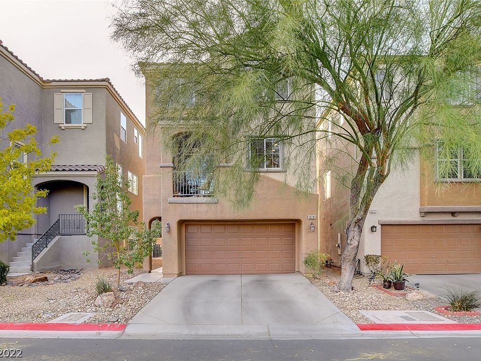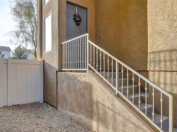Enjoy your morning coffee on the front balcony of this beautiful 4 bedroom, 2 and 3/4 baths home with no direct front neighbors and one bedroom/bathroom on the ground floor. Located within a 3 mile radius of Costco, St Rose Dominican Hospital, Smith's, EoS gym and other dining and shopping. This home features an open kitchen, living and dining room that is perfect for entertaining. The kitchen features stainless steal appliances, gas stove and granite countertops. There are 3 bedrooms on the 3rd floor including the primary suite which features a spacious bedroom, walk-in closet, water closet, and double vanity. Washer and dryer is also conveniently located on the 3rd floor in a separate designated space. Low maintenance desert landscaping in front and back with a fully fenced in backyard. Water heater, washer/dryer and vinyl flooring was bought within the last two years and will be conveyed with home. Home warranty included!