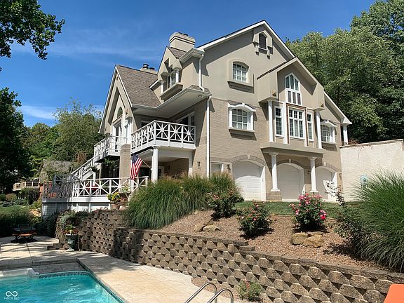 Welcome to your beautiful dream home located in the prestigious community of Cedar Ridge of Traders Point.  An entertainer's paradise, step inside and be greeted by high ceilings and an abundance of natural light. The main level features a spacious great room with double-sided fireplace, home office, and a refined dining room.  The gourmet kitchen includes a center island, perfect for enjoying daily family life and hosting intimate gatherings.  The open-concept layout seamlessly connects the kitchen to the living and dining areas, creating a warm and inviting atmosphere.    The primary bedroom with built in bookshelves, fireplace, and a private balcony includes an ensuite bath with separate shower and tub, and walk-in closet.  Upstairs you'll find three secondary bedrooms, one with an ensuite bath. The lower level features a family room, additional full kitchen, bedroom, 2 full bathrooms, and a versatile bonus room designed to meet all your lifestyle needs.  The 3-car garage provides ample space for vehicles and storage needs.      Outdoor living is elevated with upper and lower decks, overlooking a beautiful landscaped, grassy yard with mature trees, and in-ground swimming pool.  This seamless blend of indoor and outdoor living ensures an unparalleled experience of entertainment and relaxation.     Located in Brownsburg, the property offers easy access to dining, shopping, and is ideally situated with access to top-rated schools.     Embrace a lifestyle of elegance and comfort in this one-of-a-kind sanctuary.