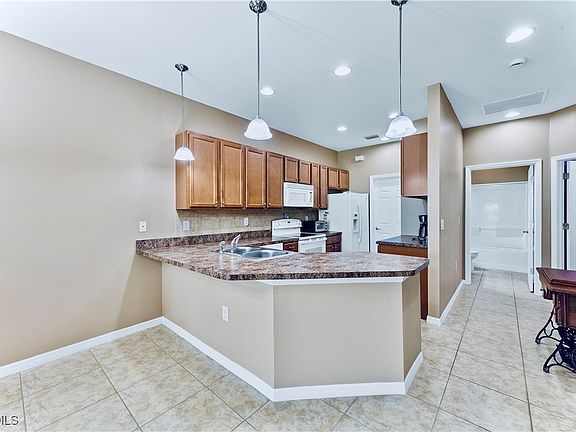 Welcome to this LAKEFRONT meticulously maintained 2/2 + DEN home nestled away in the highly desirable Marblebrook GATED pool community with low HOAs. This impressive villa with CITY WATER & sewer has been freshly painted spotlighting a welcoming breakfast bar & custom-built coffee bar, an attractive tiled backsplash, pendant & recessed lighting, and a spacious master suite with dual vanities & walk in closets. It also highlights a desirable whole house water filtration system, an awarding GREAT room, a pantry, window treatments, premium fixtures, screened patios, HIGH SPEED internet, hurricane shutters, and the laundry room is under air with washer & dryer. This peaceful property is located right across from Veterans park just minutes from all major amenities with a quick commute to Fort Myers. Schedule your showing today!
