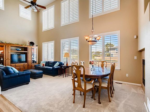 Pride of Ownership! This impeccable home welcomes you into a beautiful living room and dining area with lots of windows to make it bright and airy, vaulted ceiling, plantation shutters, dual fireplace that extends into the family room. The large eat-in kitchen boasts granite counters, 42 inch maple cabinets and warm wood floors as well as a flex/tech area. The spacious master bedroom has its own 5-piece master bath. Two roomy bedrooms, a large loft and full bath can also be found upstairs. The bathrooms have been upgraded with granite and new sinks. The finished basement includes a 3/4 bath. The roof is 3 years old. With the newly installed privacy fence you can enjoy the patio that overlooks the open space. Access to 4 state of the art rec centers and 35 miles of hiking and biking trails. Close to Park Meadows and C-470. Move-in ready!