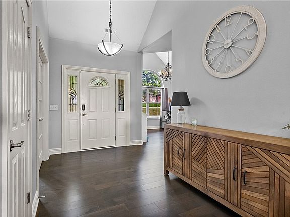 Located in Cave Springs, this property offers prime luxury living. Enjoy community amenities like a pool, clubhouse, and playground, perfect for families. Indoors, soaring cathedral ceilings and grand archways exude opulence. With 3 bedrooms, an office, and 2.5 baths, the split floor plan balances comfort and functionality. This is an entertainers dream, you can entertain effortlessly with an open concept, formal dining room and a gourmet eat-in kitchen. Outside, a spacious fenced yard awaits your creative touch on over half an acre. Plus, a garage storm shelter provides peace of mind. With a 1-year home warranty included, seize this opportunity for worry-free living.