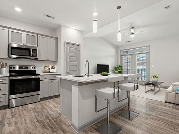 - Exterior features: , 1-, 2-, and 3-Bedroom Apartment Homes, 24-Hour Cyber Cafe and Co-Working Space, 24-Hour Emergency Maintenance Available, 9-Foot Ceilings, Bicycle storage, Complimentary Doorside Waste Collection, Deep Kitchen Sinks, Designer Tile Backsplash in Kitchens, Detached Garages, EV Charging Station, Electronic Keyless Deadbolts, Energy Star Rated GE Stainless Steel Appliances, Granite Countertops Throughout, Kitchen Pantries and Storage, Luxury Plank Style Flooring, On-Site Management, Open Concept Floor Plans, Package Receiving, Pet Park, Pet Washing Station, Pet-Friendly Community, Rain Shower Heads, Resident Social Events, Smooth Ceramic Cooktops, Space Enhancing Curved Shower Curtain Rod, Two Custom Kitchen Finish Packages Available, USB Charging Ports, Wine Bar, Yoga, Stretching, and Meditation Studio