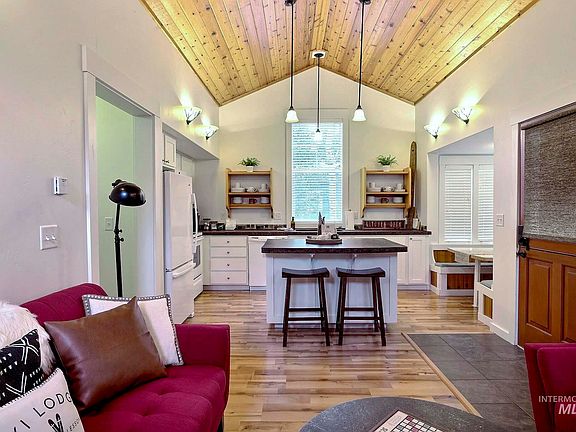 Minutes to Little Ski Hill, Brundage Resort, Bear Basin trails, Shore Lodge & lake/river access! Cozy Craftsman style cottage just off the beaten path in a quiet, quaint undiscovered corner of McCall.Turn-key ready for year round living or short term rental, furnishings included.Sip coffee on the 244 sf backyard deck & watch the local wildlife in the adjacent 40 acre meadow, designated as a wetland reserve.Fully furnished, classic mountain decor & comfy beds/furniture.Welcoming, cheery dutch door swings open to great room where tongue & groove ceilings soar & light streams throughout.Guests will gush over the thoughtful details found in the great room, kitchen & dining nook with bench seating...built-in open shelving surrounding warm pellet stove, classic white shaker style cabinets, stained/stamped concrete counter tops, stainless steel sink.Designed by Ross Chapin, award winning architect known for designing perfectly scaled and detailed homes. Low maintenance lot for lock/leave visits & plenty of parking.