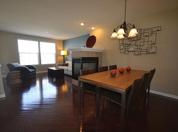 Available July 1, Viewings start June 1st, (West side of Randall & Bowes Rd) Two story foyer w/hardwood welcomes you to this spacious home that has been lovingly cared for. Bright and airy w/lots of big windows. Kitchen upgrades include 42" maple cabinets, stainless steel appliances, Corian tops and hardwood floors. Baths feature raised height vanities, Corian tops. Door off eating area in kitchen to private and covered balcony deck for relaxing or dining. Second floor has a loft area. Huge master includes vaulted ceilings, sitting area, walk-in closet and master bath. Finished English basement w/additional family room space. Two car, extra large, garage provides additional storage. Conveniently located right off of Randall Rd. - close to shopping, dining, and expressways. Adjacent to a branch of the Gail Borden Library. No outside maintenance. No smoking indoors. Available for viewing June 1st Tenant responsible for all utilities, non refundable pet deposit.