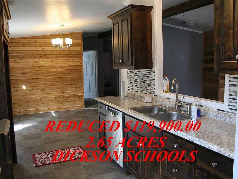 2.65 Acres with a Country Cottage Feel! 3 Bed 2 Bath Lots of Update, Kitchen Cabinets, Glass Back Splash, Flooring, Covered Back Deck, Front Porch, Nice Trees, a Seasonal Creek , Garden Area, Circle Drive and Storm Cellar. Dickson Schools.