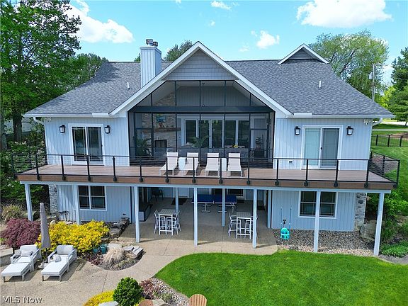 You will not find a higher quality built home on this private lake or any other, than this masterpiece of design and execution! From the 15x8 fully folding patio door that enters the screened-in porch, to the massive boulders seamlessly built into the landscaping, to the large temperature and humidity controlled wine room, no expense was spared here. With a plethora of options, you and your guests will get to choose from 4 of the bedrooms having water views while connecting to en-suite bathrooms as well as an entire in-law suite above the garage complete with a kitchenette and its own heating and cooling. The options are not limited only in where to rest after on the water or in the amazing backyard, you will have a hard time choosing where to spend your time even by the fire with a choice between the fireplace in the living room, screened in porch, or the fire pit built into the backyard. The kitchen, complete with every option you could ask for including double ovens, double islands, coffee station, walk-in pantry and more all connected to the main entertaining area that opens to the deck and lake views. Built with low maintenance as a focus, you will enjoy that all of the decking is composite, even the dock at the water is built to a higher standard with seating and composite materials as well. With all of the design and engineering that went into this build, perhaps the favorite might be the gazebo that extends to the water’s edge, providing views up and down the lake while being screened in, having wifi and power with a ceiling fan so you can relax or even work from the water’s edge in comfort. Once everybody is done for the day there is even a room that enters from the lower level that has a shower and the second laundry room ideal for a place for kids or furry friends to shower after the lake fun. Located on the Clubhouse and Marina side of the private lake community of Roaming Shores, fun and entertainment is both on property and around every corner!