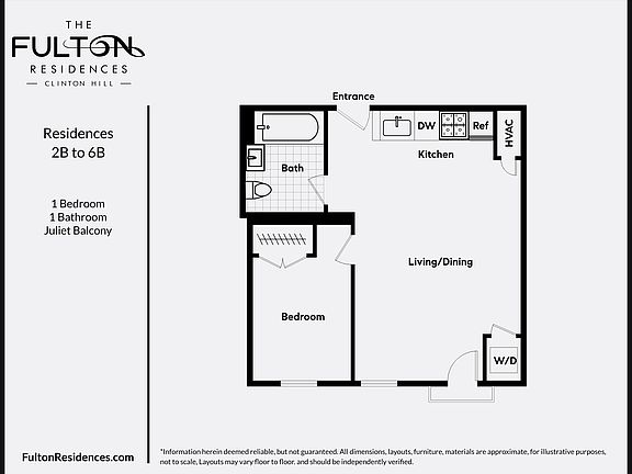 Welcome to Apartment 6B. A Sunny 1 Bedroom with a Juliet Balcony, Luxury bathroom with soak tub, Modern Kitchen, in-unit washer/Dryer.
