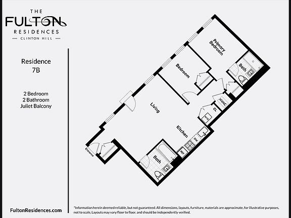 Welcome to Residence 7B. A Top Floor and Spacious 2-bedroom + 2 Bathroom Residence with a Modern Kitchen, a Juliet Balcony, great closet space, and in-unit washer/Dryer.