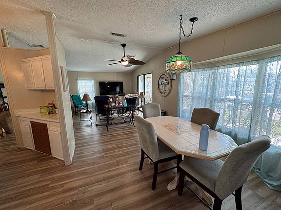 Feast your eyes on this move-in-ready home located on a corner lot with a reasonably priced lot lease of $704.16 per month. This charming 2-bedroom, 2-bathroom residence offers modern upgrades including quartz countertops and stainless steel appliances. The generously sized shed includes the laundry room plus a separate workshop area, offering plenty of space for projects and storage. The spacious carport accommodates multiple vehicles with ease. A golf cart is also available and may be negotiated as part of the sale. The open floor plan is perfect for entertaining, and the screened-in lanai provides a relaxing spot to enjoy views of the street and stay connected with all the happenings in the park. Located in a gated community, residents enjoy access to two clubhouses, two hot tubs, and an on-premises restaurant and pub. There many more amenities that this park offers not listed.