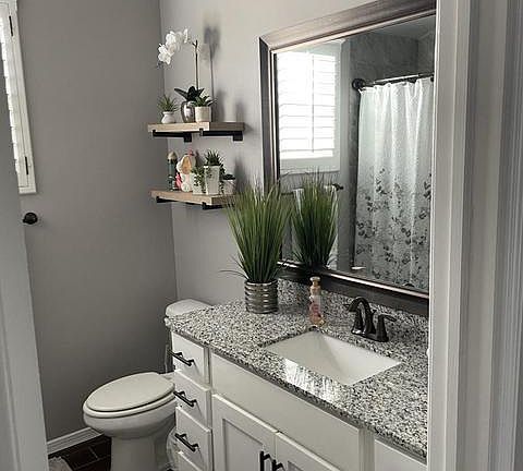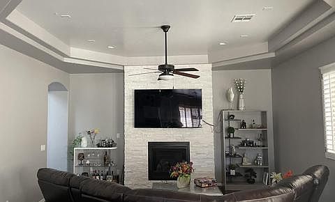 Three car garage, whole house water filter, large patio, triple sliding glass door, shed. Open concept.