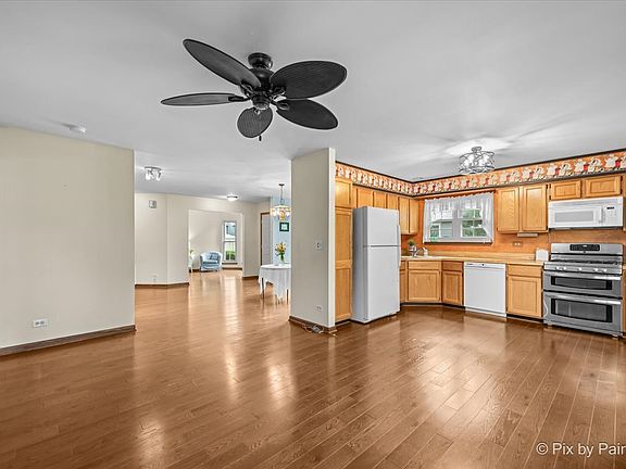 Your New Home Sweet Home Awaits! Picture yourself in this charming 2-bedroom, 2-bathroom End-unit Ranch Townhome with full basement. You'll love how the open floor plan flows beautifully from room to room, and with tons of windows (2012), you'll wake up to sunshine streaming in every morning. The hardwood floors throughout most of the home give it such a cozy, feel that's perfect for bare feet or fuzzy slippers. When it's time to unwind you can retreat to the primary suite with vaulted ceilings that make the space feel so airy and open. Plus, you've got a walk-in closet for all your treasures and a private bathroom with a walk-in shower that'll make your morning routine a breeze. Step out from the kitchen onto your own deck where you can sip your morning coffee, fire up the grill for weekend barbecues, or just relax with a good book. Plus on those chilly Fall days you can snuggle up with a warm fire. And that full basement? It's like a blank canvas waiting for your creativity - whether you want a home gym, craft room, man cave, or just amazing storage space. The attached 2-car garage (with a super handy accessible ramp) means no more scraping ice off your windshield, and you're going to love being so close to all the great shopping and restaurants along Army Trail and County Farm Road. Everything you need is just minutes away! This isn't just a house - it's your next chapter waiting to begin. Schedule your showing today!