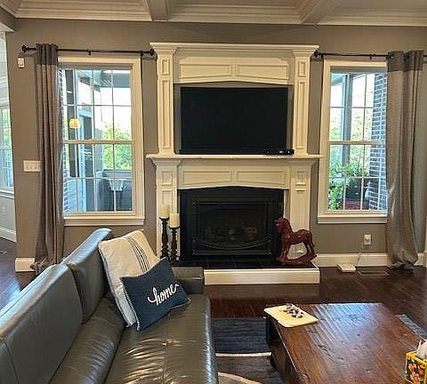 Gas log fireplaceHeated salt water poolLush landscapingBreakfast barStainless steel appliancesScreened in porchCrown molding