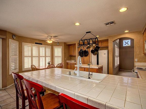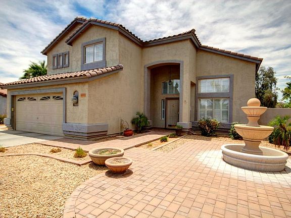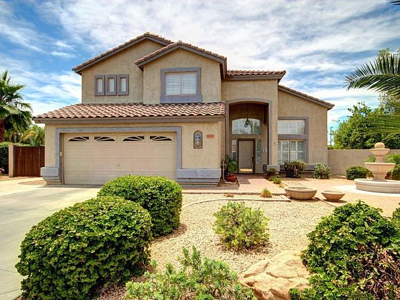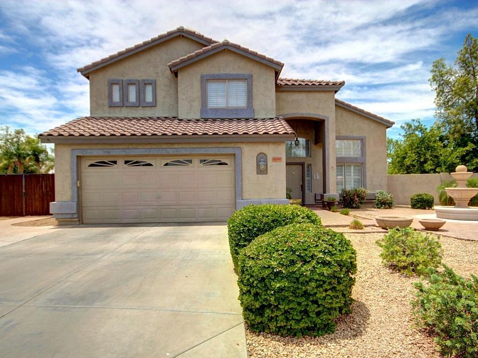 Offering superb value in this 2470 sq ft. home on one of the largest lots in the heart of Summer Meadows! Open and inviting floorplan, premium plantation shutters t/o, main floor bedroom/den, entertainment friendly kitchen/family room, breakfast bar, island, generous cabinets, private master with full ensuite including double sinks, walk in closet, separate tub/shower AND sitting/workout area! The backyard is filled with fun! Sparkling diving pool, inground trampoline, custom basketball court, a place to play! Covered back patio, charming paver front patio w/fountain. Ideal location including access to parks, running/walking paths, ball fields, Gilbert schools, shopping, freeways, restaurants and live theater close by in downtown Gilbert.