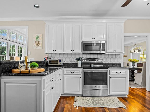 Wood burning fireplaceCovered front porchSpacious kitchenSprinkler irrigationStainless steel appliancesReal wood floorsLandscape lighting throughout yard