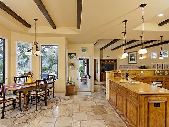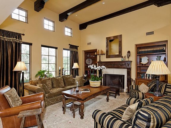 Ojai Valley's Saddle Mountain. Hard to find custom single level Hacienda style over 3700 square feet on approximately 2 1/2 acres. Views of the Topa Topa Mountains and spectacular ''Pink Moment''. Very private peaceful location yet just 15 minutes from Ventura. This high end home was built in 2006 with no expenses spared. Hand distressed beams and finely crafted wrought iron, 18 feet ceiling in living room and dining room. Crafted by Brent Lamo from a Paul Beigh design. The fabulous stone entry features a finely crafted wrought iron door. Master suite has large spa tub, walk-in shower. Custom sound system with interior & exterior remotes.. Loggia with brilliant views of Topa Topa and outdoor fireplace, gas for heating and BBQ; many outdoor seating areas. Gourmet kitchen with custom features opens to family room (57'' plasma TV) - with Hampton designed wood stove for large-scale entertaining. Walk-in pantry and butlers pantry. Temperature controlled wine cellar. Separate business office with library built-ins. Music room or possible third bedroom. Over sized 947 sq ft garage. 1065sqft loggia. Private exterior with California Oaks & Sequoia trees, drought tolerant landscaping. Tuscany in Ojai Valley!