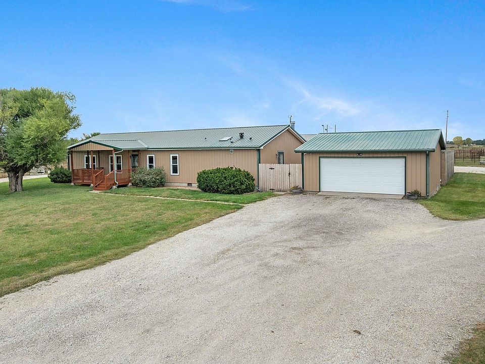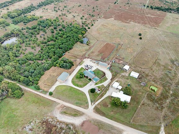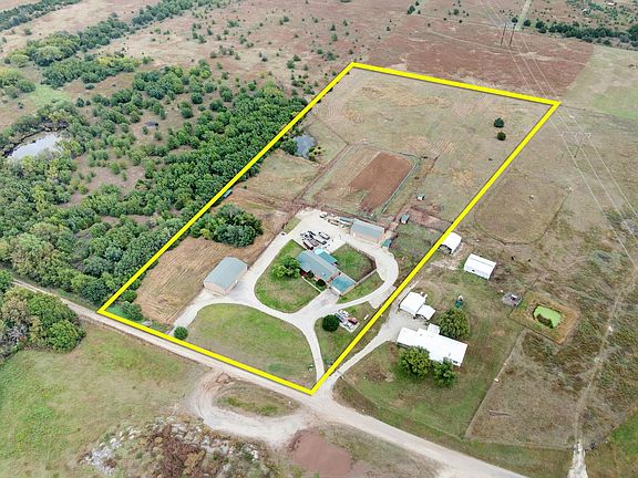 Set on 9.7 peaceful acres, this property offers the perfect balance of space, comfort, and functionality for everyday living. Inside, this 3-bedroom, 2-bath home welcomes you with a bright living room that flows seamlessly into the dining area and a spacious kitchen with generous counter space- ideal for hosting family gatherings or weekend brunches. Just off the kitchen, a second living area with a cozy corner fireplace provides the perfect spot to relax or unwind. The primary suite features a spa-like bath with a beautifully tiled walk-in shower designed for both comfort and convenience. Outside, the covered patio with porch swings is perfect for grilling, entertaining, or simply enjoying the view in any season. The fenced yard is ideal for pets, and the partial basketball court and above ground pool adds a fun touch for family and friends. For the horse lover/competitor amenities include a 150x230 lighted arena, automatic waterers, 30x50 barn w/stalls and tack/feed storage adjacent to the arena, 40x60 bldg for hay/implement storage, multiple turnouts with loafing sheds, pipe fencing, pasture ground, enclosed chicken coop/run, large circle drive for the big rigs, and a 2-car detached garage. With easy access to Wichita and nearby communities, this property combines the appeal of rural living with everyday convenience.