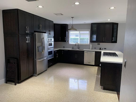 We are offering a beautiful 3 bedroom, 2 bath 1 story ranch home in the sought after East Kendall area. The home is on a 1/2 acre with a quiet no outlet street and huge setback from the road. Newly renovated bathrooms, rooms, kitchen, new impact windows, new central AC, 2.5 car garage which fits 2 vehicles (with room to spare!!), and new entry doors. In addition to kitchen appliance upgrades, flooring is done with Polished Terrazo and tiles throughout. New fiber optics available. This is a must see!! School district top rated, near Metrorail, lots of bus transportation, Whole Foods (within a mile), Target, 826 on ramp, and 874. Has space for your boat, RV, and trailer that doesn't impact your yard. Note: We will work with realtors. Owner pays water. Tenant would need to pay for landscaping, internet or cable, and electricity.