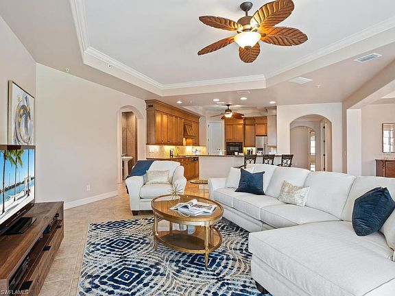 This beautiful Vivaldi beachfront condo offers pristine views from your wraparound lanai. The prestigious community boasts two private lakes with boating docks to Miromar Lakes restaurants, beach clubhouse, peninsula and bocce courts. Enjoy nightly sunsets from your lanai or on the beach just a few short steps away. Once inside this home you will see an open floor plan that occupies the entire 2nd floor of a 3 story low-rise with a private elevator entrance. This 3 bedroom +den, 3 1/2 bath condo is newly furnished and offers one of the most sought after floor plans in Miromar Lakes, including upgrades throughout, new stainless steel Kitchen Aid dishwasher and refrigerator, a private 2 car garage, and a brand new air conditioning unit. This is a must see property! Live in luxury with unparalleled amenities including an award winning beach clubhouse, marine services, boat rentals, private docks, tennis, fitness center, biking, motorized and non-motorized water sports, waterfront dining, state-of-the-art theater, golf, concierge service and a full service spa. Come see the #1 community in the United States and make this beautiful condo your dream home!