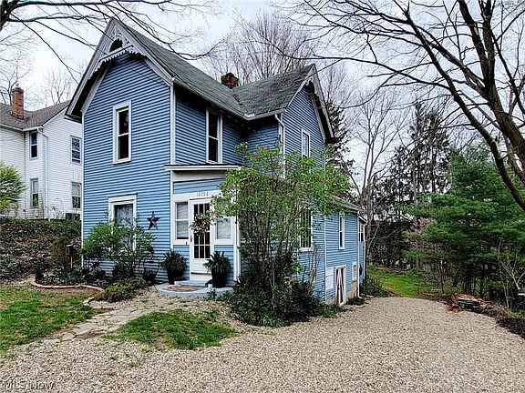Elegant Victorian located within walking distance to the Cuyahoga River and a 10 minute drive to Hiram college! Enjoy the ornamental gable pediments, original woodwork, trim, wood flooring, stunning front door and porch spindles! Modern updates in the kitchen include granite countertops, 6 burner gas stove and custom rangehood. Spacious formal dining rm with built in bookshelves and decorative ceiling. First floor living room area or use as the 4th bedroom! You'll fall in love with the enclosed rear porch just off the kitchen! Use it as a sitting rm, game rm, plant rm or pet area. Enclosed front porch is so inviting! New gravel, gas stove and refrigerator. Two enclosed outdoor storage or tool rooms with concrete floor and rear brick patio with 3 tiers! There is a first-floor bedroom and half bath, two large bedrooms with closets and ample storage space on the second level along with an oversized full bath! Nice size attic space just off the master bedroom that has wood floorboards for lots of extra storage! The lower level has 3 separate storage rooms including a large workshop that would be perfect for the crafty wood worker or artist! Park your motorcycle, lawnmower, ATV or tractor. in the spacious lower level! Bonus room has built-in shelves which would be great for canning, a wine cellar, or display your hobbies or crafts! This home is located on a park-like setting with lots of trees, flowers, blackberries, fire pt and garden area. Walk to downtown with new stores, kayak livery, fishing on the Cuyahoga at the park, hike and bike trail, churches, post office and UH Health center! Crestwood schools! Seller is paying for a one year home warranty!
