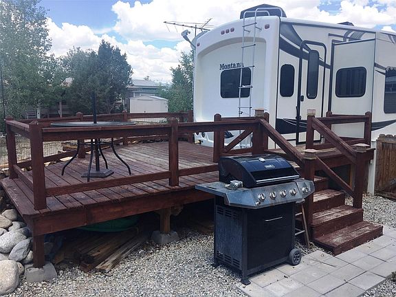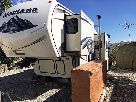 This property would make an ideal mountain getaway or a practical full time residence. Fully furnished, super nice, 2014, 40 ft Montana 5th wheel trailer with 4 pop outs in "like new" condition. Gas fireplace, comfortable living and eating spaces, an exterior wood burning stove tied in to the heating system to provide good, economical heat in the winter in addition to propane heat with owned propane tank. A fair amount of firewood is included. Nice deck off the south end, fenced yard, metal storage shed with electricity. Home is very tightly skirted and well situated. Owners have full access to the Chateau Lodge, laundry room, BLM across the river for some beautiful hiking, and of course fishing for some supper in the Arkansas River or Chalk Creek. Property has winter water.
