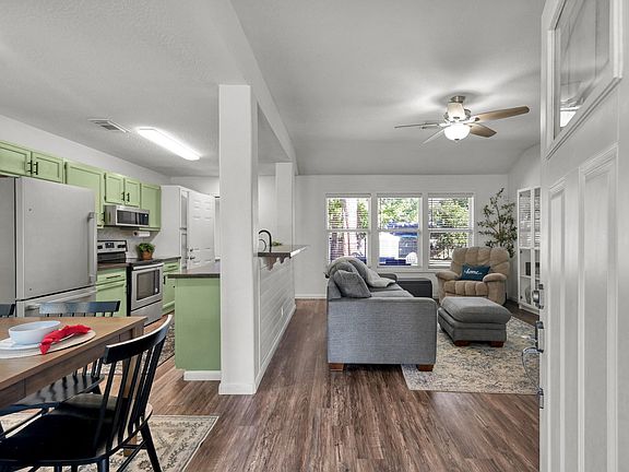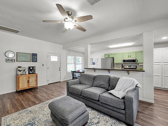Welcome to this beautifully maintained single level home offering 3 bedrooms and 2 bathrooms on a spacious lot. Inside, you will find an inviting open floor plan with wood look flooring throughout. The kitchen, complete with ample storage, overlooks the living room and flows easily into the dining area. The living space is filled with natural light from three large windows that frame views of the oversized backyard. The primary suite features tray ceilings and an updated ensuite bath. Two additional bedrooms share a full bath with a tub and shower combination. Step outside to enjoy the expansive backyard, complete with a patio, storage shed, chickens!! chicken coop, mature trees, and a fully fenced yard that is perfect for relaxing, entertaining, or hobbies. Don't miss the lake access with swimming, fishing, a pavilion a dock and a boat ramp!