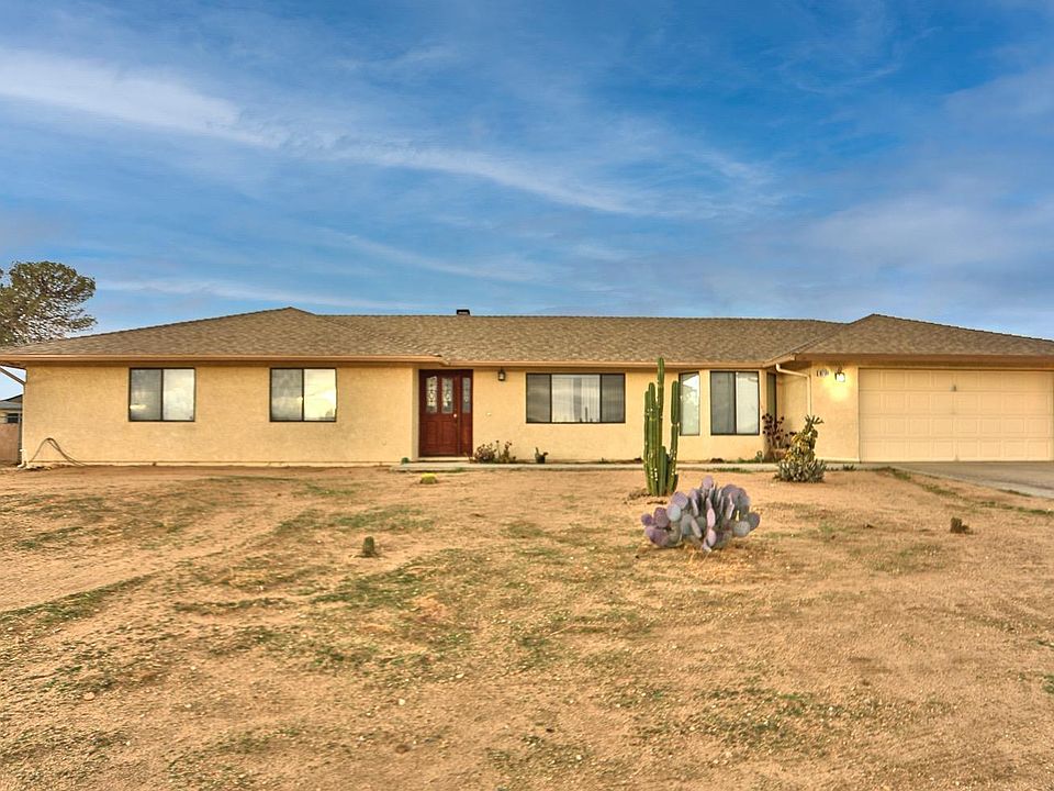 Welcome to 10796 9th Avenue! Fantastic commuter friendly location for this fantastic 3 bedroom 2 full bathroom Hesperia home. As you enter you are greeted with a step down area that can be used as an office, game area, play area or possible bedroom. Continuing you'll noticed wood laminate flooring throughout and an updated stacked stone corner fireplace in the spacious family room. The beautifully remodeled galley style kitchen has granite countertops, tile backsplash and white cabinetry. Oversized pantry located in the inside laundry room adds just another great feature to this home. All bedrooms are spacious with ceiling fans in each room! The master suite has French doors that open up to the enclosed patio area perfect and ready to customize this additional space to a mini master paradise. Soak tub with separate shower and dual sinks, to complete this massive master bedroom! The backyard has a covered patio and basketball court area as well! With over an acre of land there is plenty of space here for all your toys, add a pool, a workshop or ADU, the possibilities are endless! Don't let this one get away!