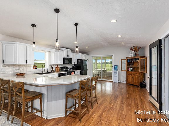 This gorgeous 3-bed/2-bath farmhouse is nestled on an acre and surrounded by peaceful farmland. With just under 1,900 sqft of living space, this home features a spacious, open layout filled with natural light-perfect for relaxing or entertaining. The heart of the home is the large kitchen, which flows effortlessly into a charming 3-season porch — the perfect spot for your morning coffee or evening wind-down. Enjoy the convenience of a main-floor primary bedroom, full bath, and laundry, or head upstairs to find two additional bedrooms and another full bath. Outside, hobbyists and mechanics will fall in love with the 3-stall garage, including an abundance of storage and a rare service pit. Recent updates include a new water heater & water softener w/iron filter (2025), new furnace & A/C (2021), and updated Pella windows throughout the home. This is the perfect blend of classic country charm and modern convenience! Seller has delayed review of offers -MONDAY, SEPTEMBER 8TH, AT 10:00 AM.