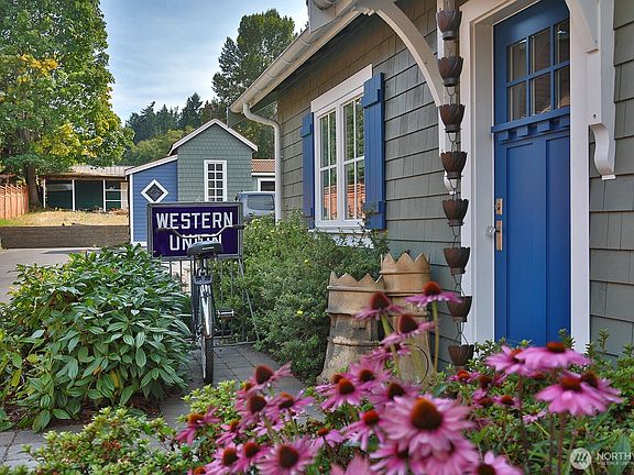 Charm meets artistry in this unforgettable Langley cottage, perfectly placed in the heart of Whidbey's picturesque seaside village. Filled with timeless charm & character, offering two bedrooms & an office, this home welcomes you with a covered porch, wide-plank wood floors & a beautiful brick fireplace framed by custom built-ins. The bath features a Carrara marble vintage vanity, wainscoting & a subway tiled shower with hand painted accents. Plantation shutters, vintage style glass knobs, & wood doors add warmth and style. The kitchen is equally inviting with wood beamed ceilings & a subway tile back splash. With unique design elements throughout, this enchanting retreat is moments from Langley's vibrant restaurants galleries & boutiques!