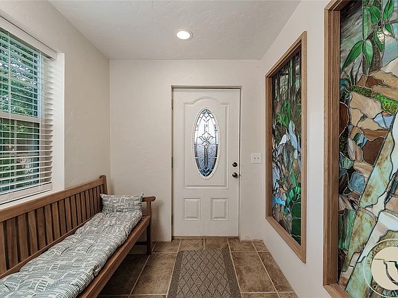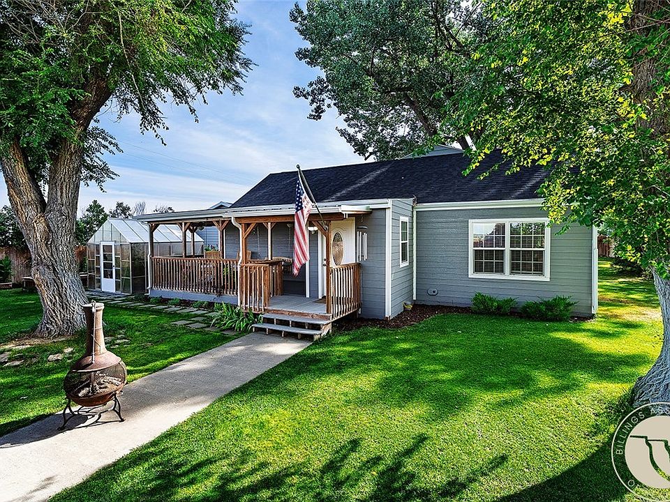 Your oasis awaits! Covered front deck leads to the entryway way highlighted with stained glass windows. Large living room with hardwood floors and gas stove open to the modern kitchen featuring tile floors, butcher block counters and stainless-steel appliances. Adjacent dining room with patio doors leading to the back covered deck are ideal for relaxing/entertaining. Primary suite includes a reading area, a walk-in closet and bathroom with large soaker tub. Two additional bedrooms, full bath, laundry room and mudroom complete the main living spaces of the home. Large 4-car attached garage offers separation of space – 3 bay portion is heated! A fully fenced yard is truly like having your own private park with large trees, greenhouse, raised garden beds, hot tub and two sheds. There are two wells, one for the home and one for the yard. Full basement offers storage or workshop space.