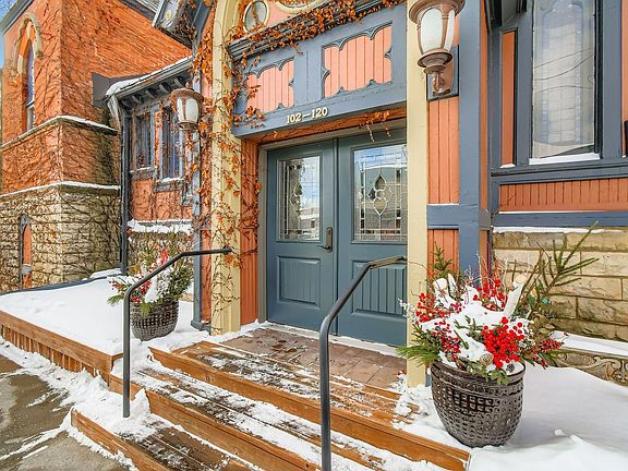 Rare opportunity to own a piece of historic Stillwater. Built in 1883 and converted into 10 condos in1983, this stunning 2 bed/2 bath unit has exposed brick, stain glass windows, beautiful original wood work and fixtures. Newer appliances, updated baths, flooring & carpet. 10" ceilings and open kitchen & living area are perfect for entertaining. The primary bedroom is so spacious & architecturally pleasing. Primary bath has a huge walk-in shower and newer cabinetry. 2nd bedroom has a great office nook and a door that opens to the deck. Along with all these fabulous features, this unit has two designated parking stalls, one inside the heated garage and one in the parking lot just below your deck. The large deck has views of the river. Perfect place to sit & enjoy a beverage and relax. The location is the icing on the cake: walking distance to all the downtown restaurants & shops, the library and the beautiful St. Croix River. Stillwater is a destination city, with events happening all year round. You'll never want to leave. Don't miss out! Schedule your showing now.