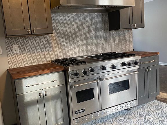 Beautiful three bedroom duplex. Fully renovated top to bottom. Central Air. Freshly finished hardwood floors throughout. First floor powder room. Magnificent chefs kitchen featuring 8 burner Viking range with double oven. Walnut butcher block counter tops, marble herringbone backsplash, and moroccan tile floor are sure to please. First Floor has modern floor plan with kitchen open to dining and living rooms. Upstairs find three bedrooms and a full bath with double vanity. Master features vaulted ceilings, second bedroom has walk in closet and third bedroom has a fantastic balcony. Large useable basement is tidy and features Washer/Dryer. Use of fenced back yard and patio.