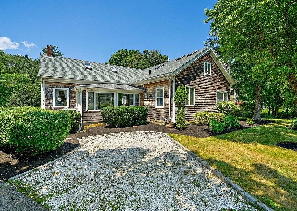 OFFER deadline is Sat 7/8 by 7pm. Make offers good until Monday 7/10 noon. Send 1 pdf file with lead/preapproval/etc. Charming 4 BR farm style cape on a private lot with detached 2 car garage. Upon entry into light and bright mud room w/ slider into fireplaced LR, eat in dining room opens to large kitchen with center island. 1st floor MBR with sitting room and full BA, screen porch and laundry. Hardwoods and WW carpet, plenty of closets and built ins. 2nd floor offers 3 BR and a full bath. Skylights, natural wood, bookcases, mini-split AC's, title V approved, large rear yard with tennis court, and deck. Make this unique property your own! So much potential, don't miss this opportunity!