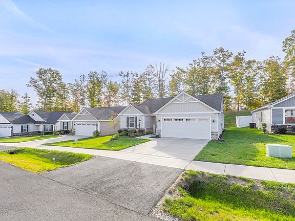 Upgraded Cottage located in the sought after section 4 of Village Oaks. This meticulously maintained 3 bedroom 2 bath home was built with custom upgrades. The Kitchen features upgraded cabinets, and a gorgeous backsplash, loads of counter space and a spacious center island. The main living areas have the upgraded lvt flooring that is easy to maintain and offers a nice flow through the home. Additional living space in the form of a 10X14 Sunroom off the dining area allows for quiet enjoyment of local wildlife and a wonderful spot to savor your morning coffee. There was additional lighting added to the home as well. The spacious primary suite features a large en-suite with shower and a large walk in closet. This home also features a full laundry room and spacious garage. Conveniently located near amenities and only 20 mins into Charlottesville, this home offers great location, low maintenance and no yard work. The HOA offers a swimming pool, club house, well laid out walking trails and a playground. This home is convenient to grocery store, pharmacies,gas stations, banking, retail sales, legal services, numerous restaurants and medical services all within a couple miles.