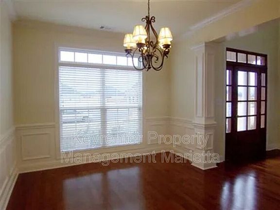 The kitchen is centrally located and designed for function, with easy access to the laundry room and garage. Entertain with ease thanks to two dining areas, a sunroom, and a large fenced backyard. Landscaping is included in the rent.